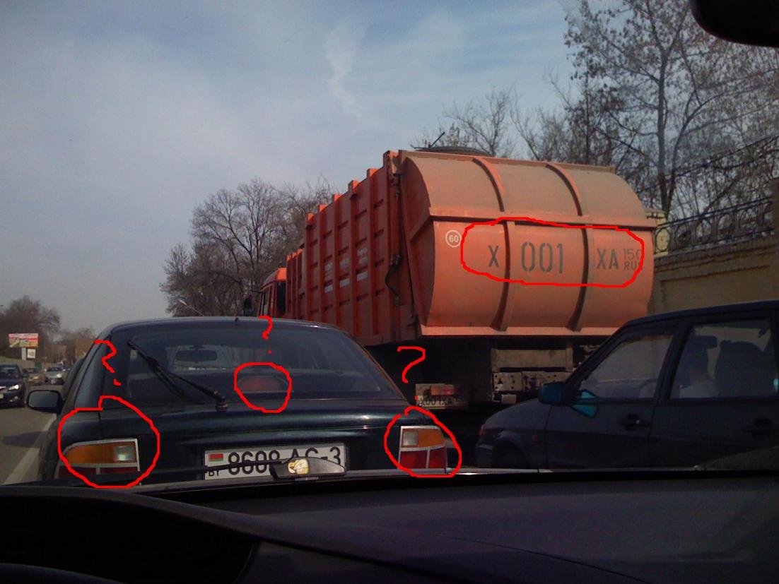 Впереди меня машинко без стопов, и мусоровозка с номером, который я хотела бы иметь, особенно буквы...